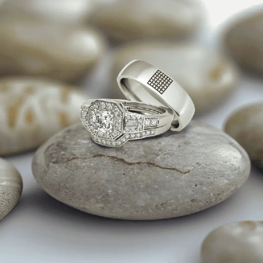 Etoile sterling silver bridal set and Royce titanium wedding band to make a complete trio set- ₦315,000