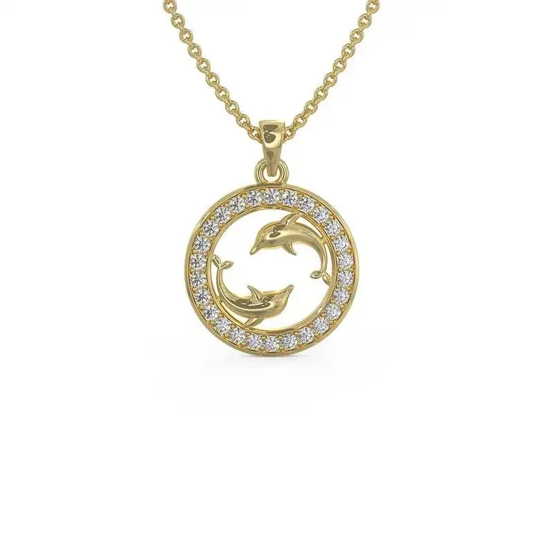 Delfina 9kt gold happy dolphins pendant and attached 18 inch chain. Chain has a 1 inch extension so you can adjust the fit easily. Comes in a beautiful jewelry box to make the perfect gift. Nationwide delivery via DHL.