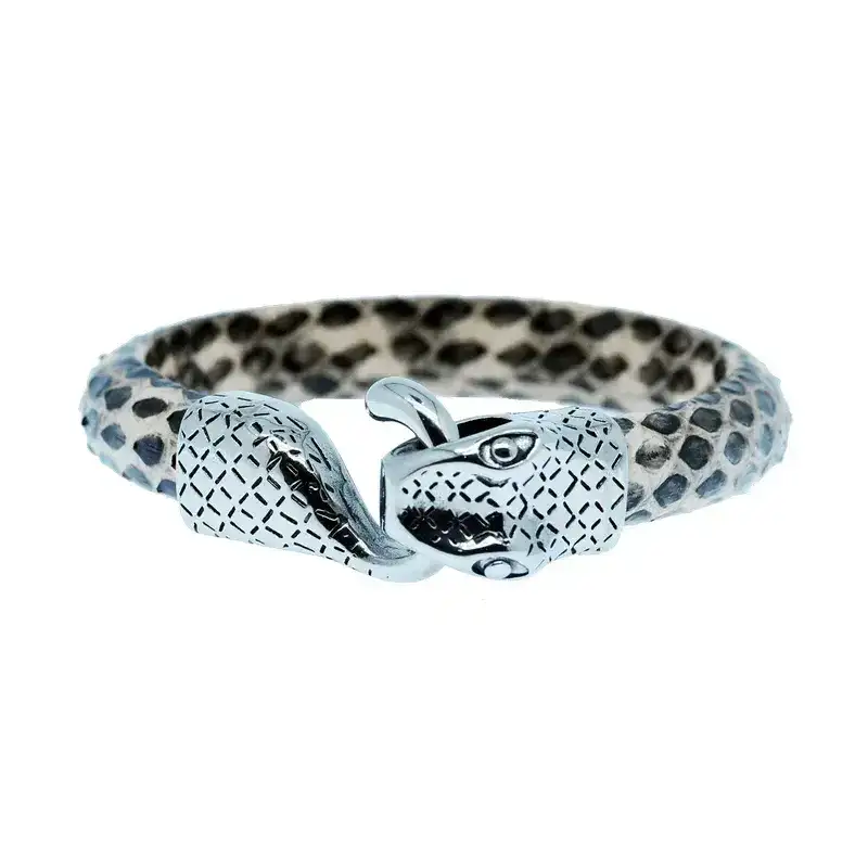 Pythus real snakeskin men's bracelet made with genuine python snakeskin and a stainless steel snakehead hook clasp
