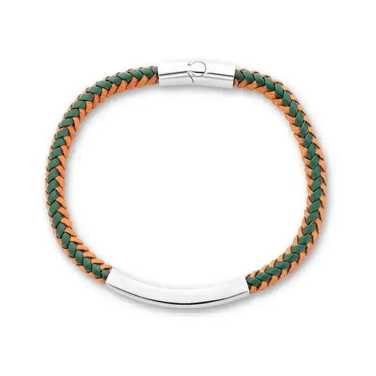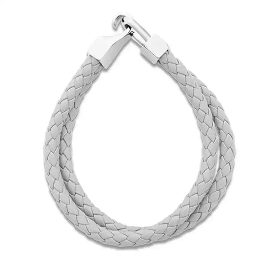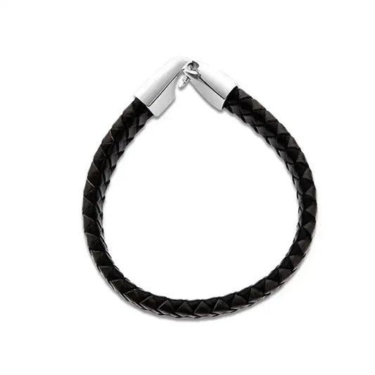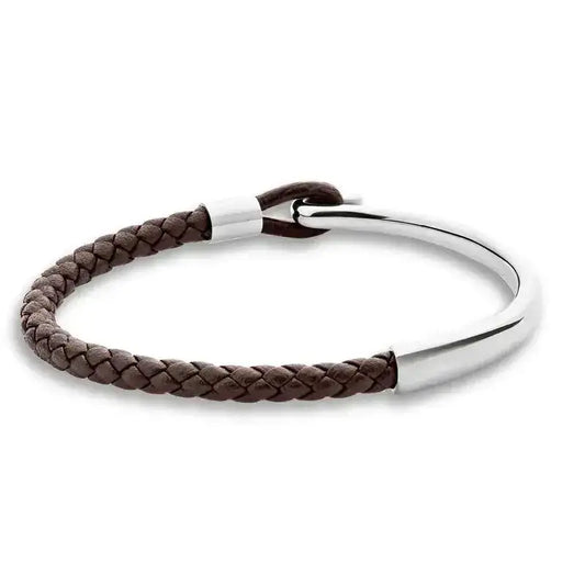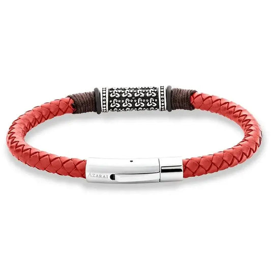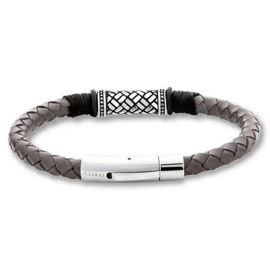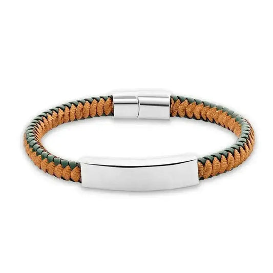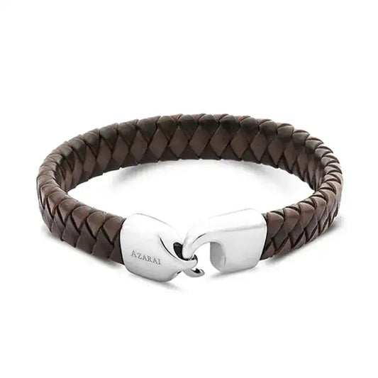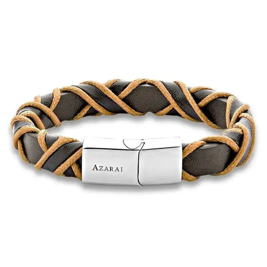 Black leather core wrapped with tan braided leather in a geometric crossing pattern. Polished stainless steel magnetic clasp with Azarai branding. Dual-texture leather bracelet combining traditional weaving with modern minimalism. Who This Is For You appreciate the artistry of traditional craftsmanship reimagined for the...- $28.00